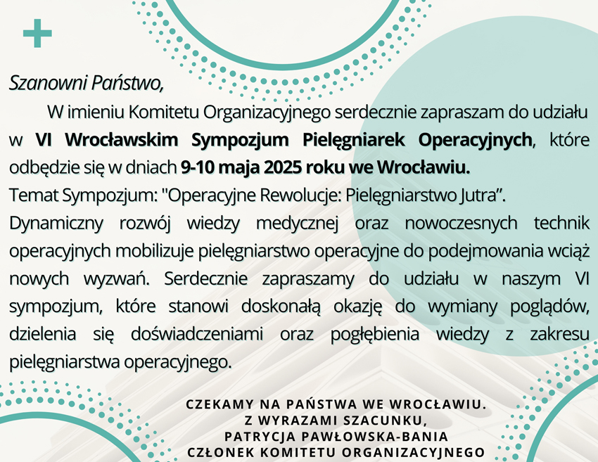 Temat Sympozjum: “Operacyjne Rewolucje: Pielęgniarstwo Jutra”.