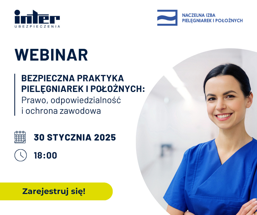 Towarzystwo Ubezpieczeń INTER Polska S.A. wraz z Naczelną Izbą Pielęgniarek i Położnych organizują 30 stycznia w czwartek o godz. 18.00 bezpłatny webinar online dla Pielęgniarek i Położnych prowadzących indywidualną praktykę.