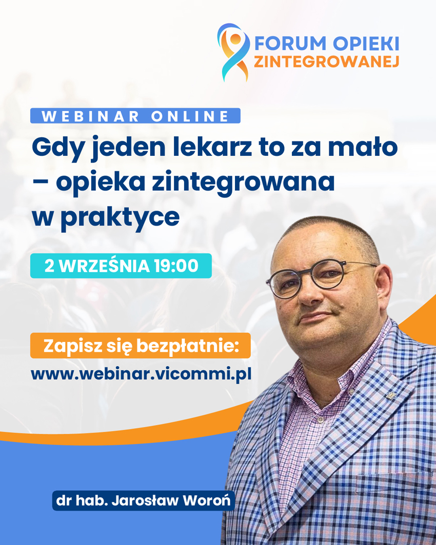 Webinar jest zapowiedzią najważniejszej konferencji o opiece zintegrowanej w Polsce – I Forum Opieki Zintegrowanej (www.forumoz.pl), tworzonego przez dr hab. n. med. Jarosława Woronia oraz wybitnych ekspertów wielu dziedzin medycznych.