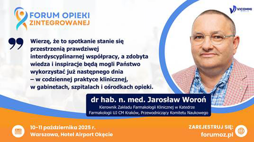 Przewodniczący Komitetu Naukowego, prof. Jarosław Woroń, zaprasza Pielęgniarki do udziału w Forum Opieki Zintegrowanej – ogólnopolskiej konferencji, poświęconej systemowemu podejściu do opieki nad pacjentem wymagającym koordynacji wielu działań medycznych.