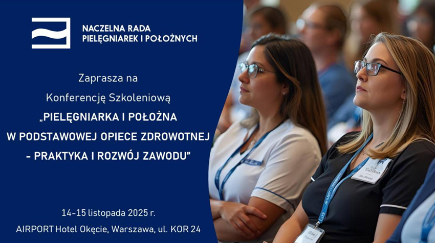 Naczelna Rada Pielęgniarek i Położnych zaprasza na Konferencję Szkoleniową Pielęgniarka i Położna w Podstawowej Opiece Zdrowotnej – Praktyka i Rozwój Zawodu, która odbędzie się 14-15 listopada 2025 r. w Warszawie, AIRPORT Hotel Okęcie, ul. KOR 24.