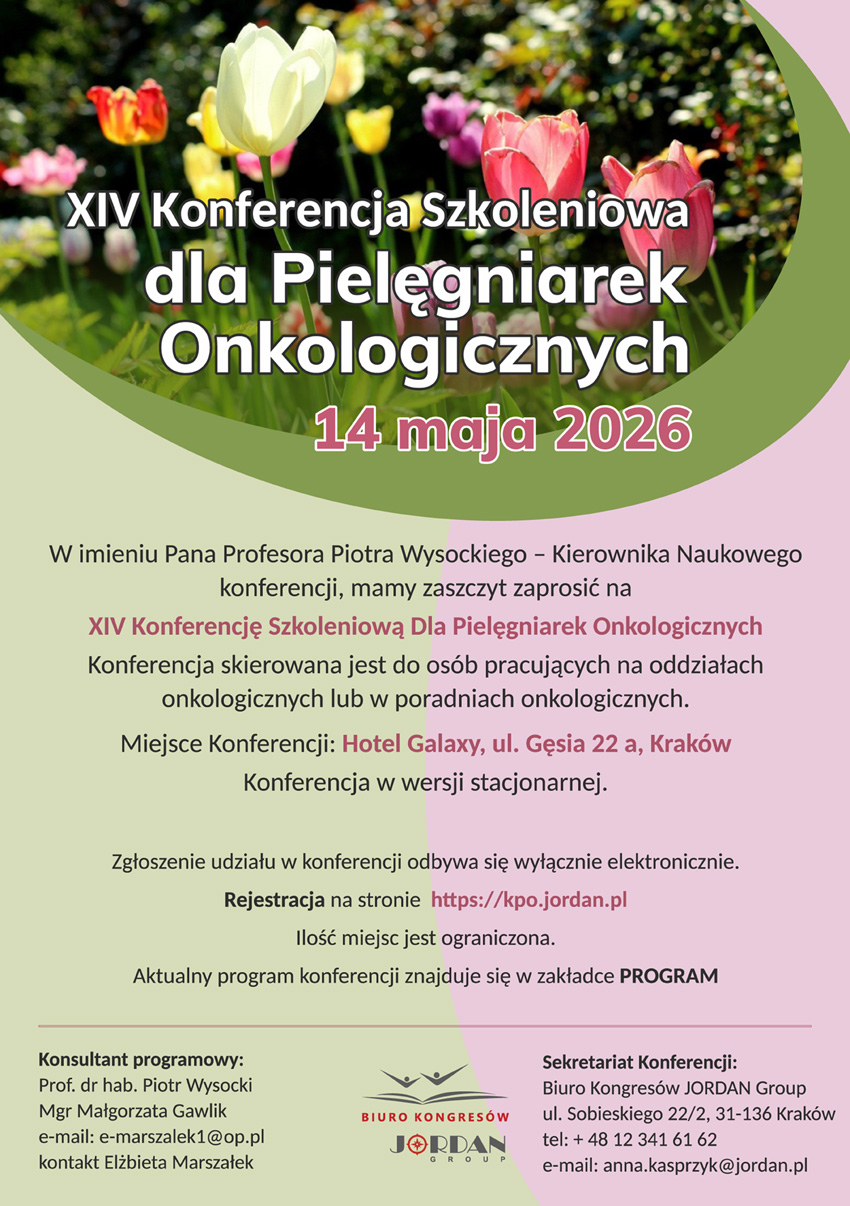 XIV Konferencja Szkoleniowa dla Pielęgniarek Onkologicznych, Kraków 14 maja 2026 r.