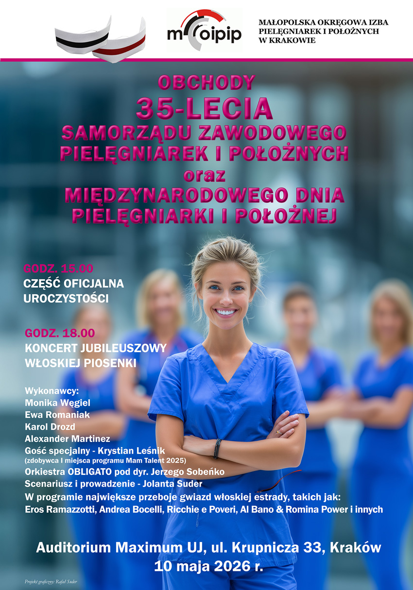 35-lecia Samorządu Pielęgniarek i Położnych oraz Międzynarodowego Dnia Pielęgniarki i Położnej Kraków, 10 maja 2026 r. WSTĘP WOLNY